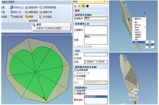 第二,将上图所做的拔模面拷贝到另外一面。然后在刚才的面上草绘如图所示拉伸切除。用第一步的做法分别将两旁也做成如图所示。这样我们的沙漏外壳就做好了。