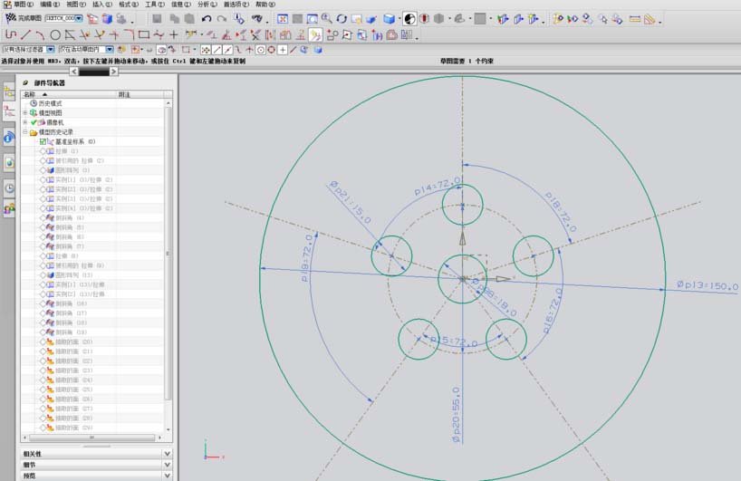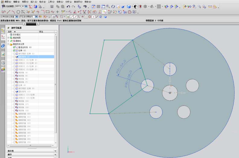 2、单击拉伸命令,选择xy平面为基准平面,进入草图,完成如下图形绘制,完成草图,输入相关参数值完成拉伸操作。