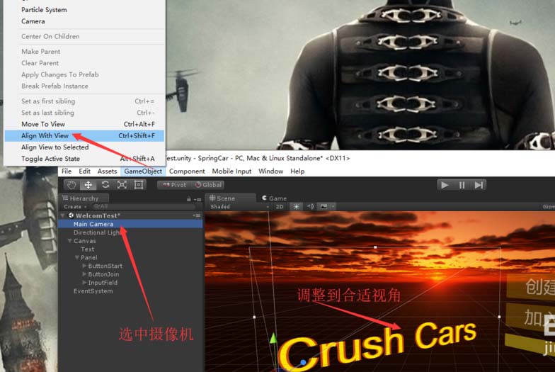 7、然后在Scene窗口中调整到合适的视角,选中摄像机,执行Align With View。最终效果如图。