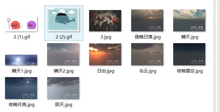 1、先下载组成天空盒子的天空图片