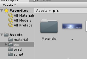 2、把天空图片拖进unity3d中创建的文件夹