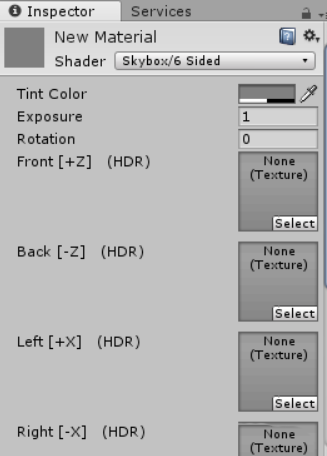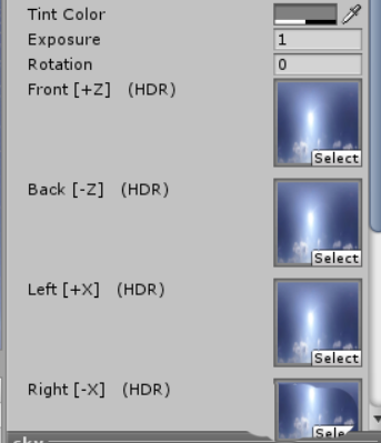 5、在天空盒的六个方向(前,后,左,右,上,下)添加天空图片