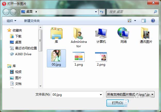 3、点击打开选项,在弹出的对话框内找到我们需要的图片,如图所示: