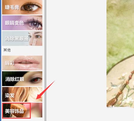 4、再在美容菜单里找到美容饰品选项,如图所示: