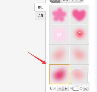 5、点美容饰品选项,在右侧选择腮红选项,并在其内选择一种预置效果,如图所示:
