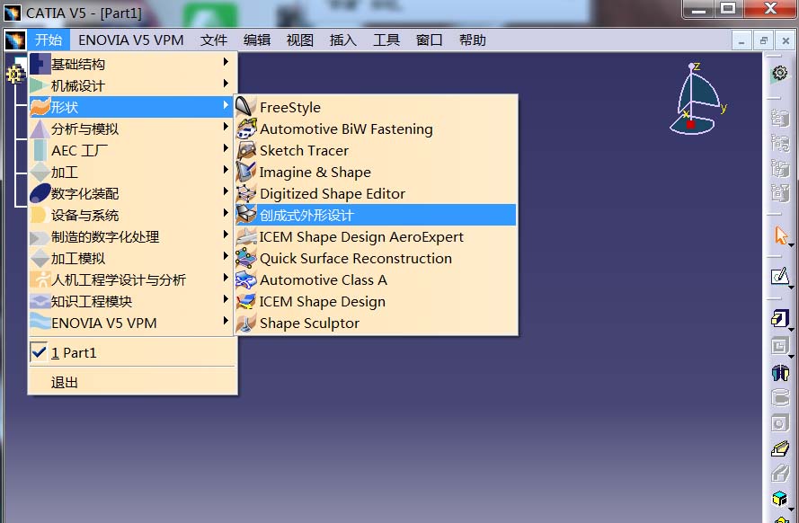 2、点击“开始”——“形状”——进入“创成式外形设计”