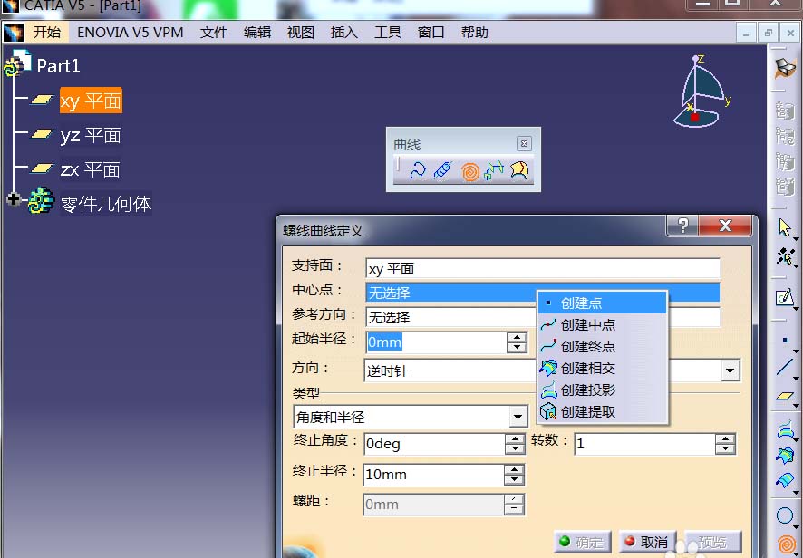 3、点击螺线命令