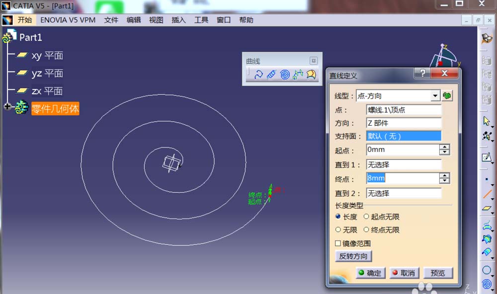 7、在螺线的顶点,定义直线