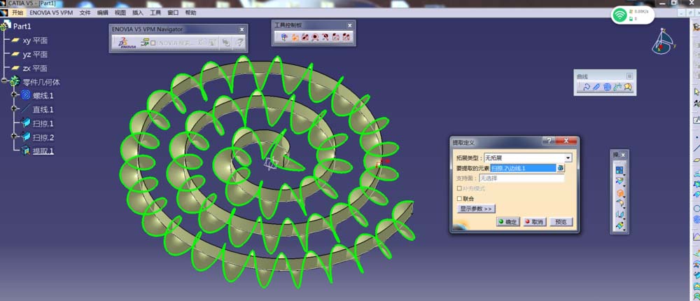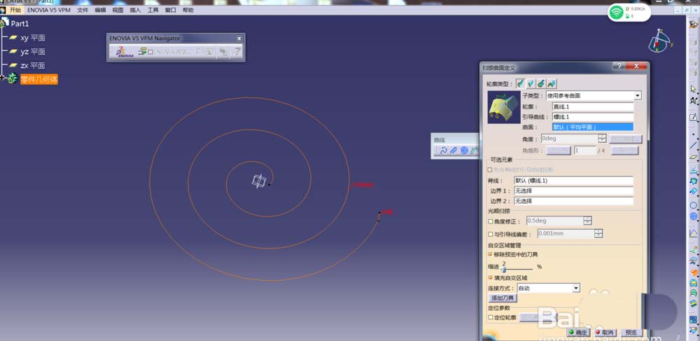 8、以定义的直线为轮廓,螺线为引导曲线进行扫掠。