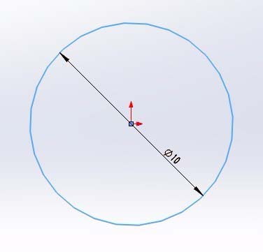 1、在我们画弹簧之前,需要先画一个圆。圆的直径就是我们即将要画的弹簧的内径。在草图绘制中绘制直径为10的圆