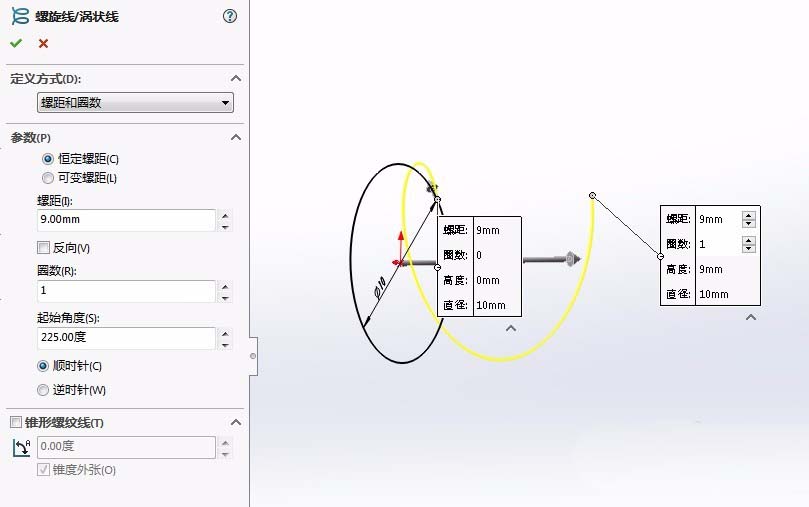 6、选择完成之后系统会自动生成预览图,确认没有问题之后点击左上角对勾即可生成弹簧初始图。