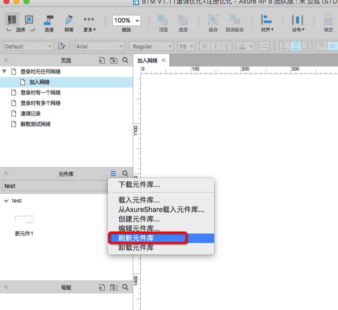 5、在进行原型开发时,如果要用到自定义的元件库,则在元件编辑界面点击“刷新元件库”