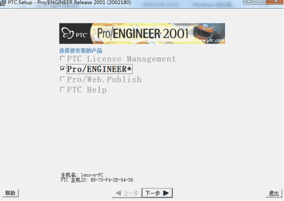1.运行光盘里的SETUP.EXE命令进行安装,这时的安装界面会显示中文,除了第一项不要选之外,其它的都可以进行安装,建议至少选择ProE和Help。