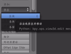 2、点击左边面板的添加,挤出->区块,快捷键:E