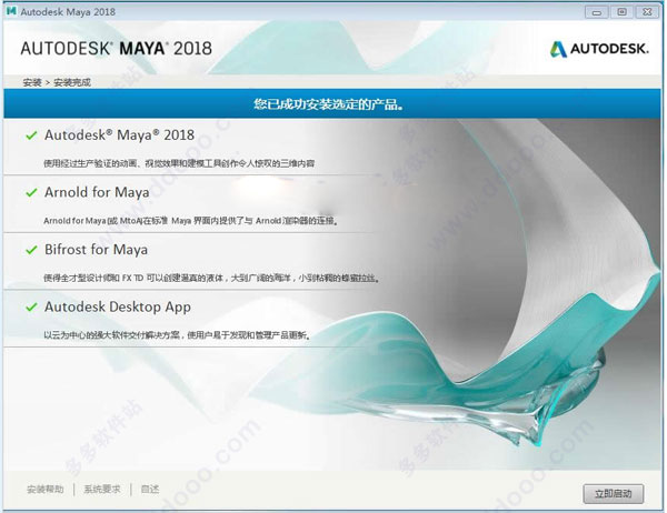 5、成功安装后,点击立即启动,对maya2018进行激活操作;