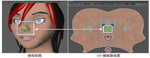 通过使用 “UV 编辑工作区”(UV Editing Workspace),可以轻松地将 3D 对象与其 2D 纹理坐标进行比较。此工作区同时显示透视视图和 “UV 编辑器”(UV Editor),允许您查看 3D 场景视图内的 UV 与 “UV 编辑器”(UV Editor)的 2D 视图中的这些 UV 有何关系,反之亦然。