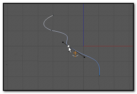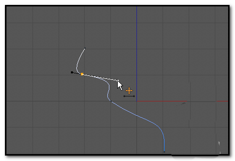 1、上面我们已认识了如何添加点。我们添加点后,点上有两条手柄。鼠标点住其中一个手柄的端点,点住不放手,拖动手柄,可以使这一段的线变形。