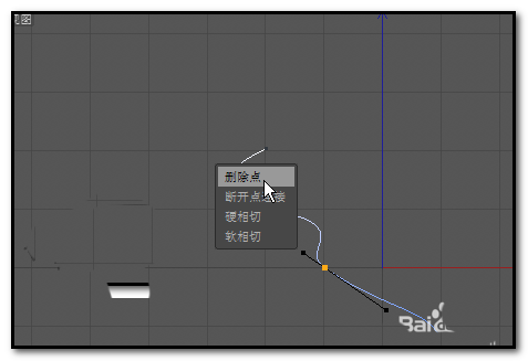 若想把曲线上的某个点删除掉。我们可以这样操作。鼠标放在该点上;右击,这时会弹出菜单,然后,点下:删除点,即可把此点删除掉。