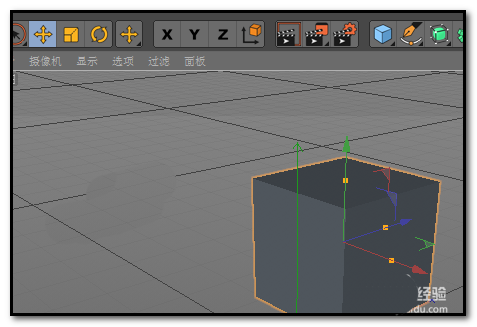 1、打开C4D界面后,在菜单栏下方这里显示着三个图标:X,Y,Z,这三个按钮有什么用呢?我们添加一个物体后,物体上已自动显示出X,Y,Z,三个轴向了。