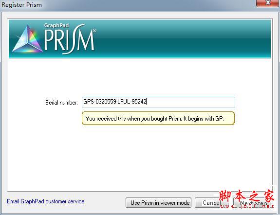 4、下面点击桌面的“GraphPad Prism 7”图标运行软件,在弹出的注册提示中输入信息,如下图所示:
