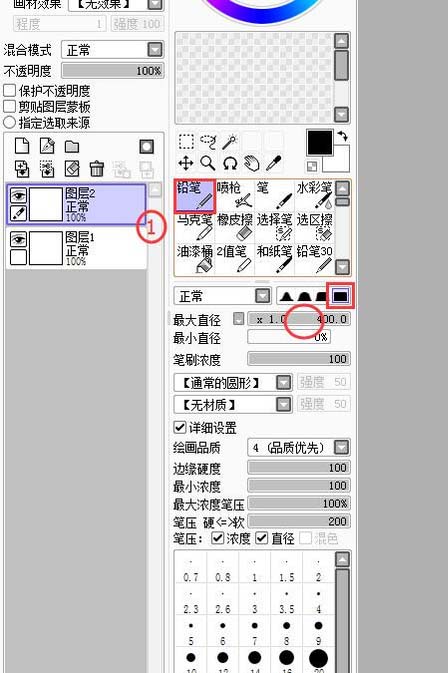 4、注意要使用“铅笔工具”和“方形的笔头”最大直径拉到最大;