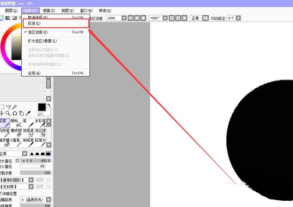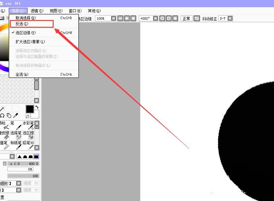 7、在菜单栏上,点击“选择”——“反选”;