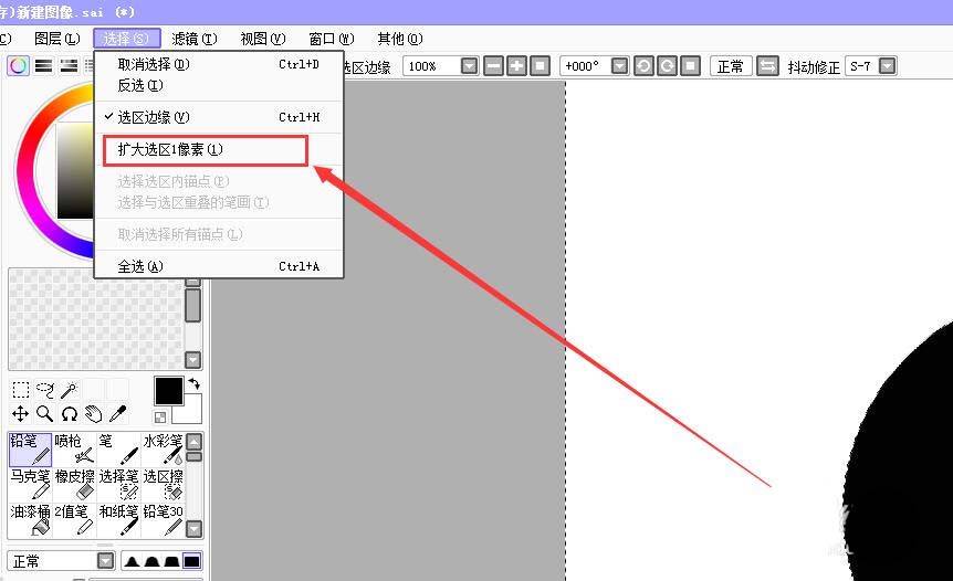 8、再点击“扩大选区1像素”;