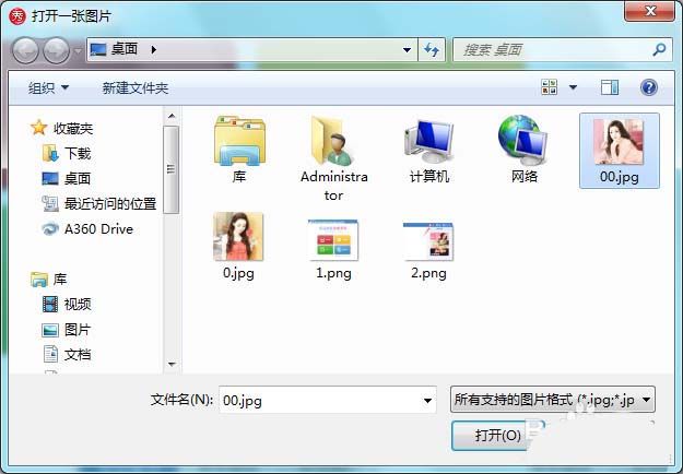 3、点击打开选项,弹出打开一张图片对话框,在该对话框内找到我们需要编辑的图片,如图所示: