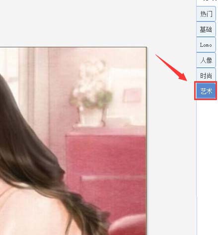 4、打开图片后在右侧找到艺术选项,如图所示: