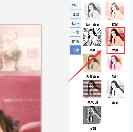 5、点击艺术选项,在其内找到油画选项,如图所示: