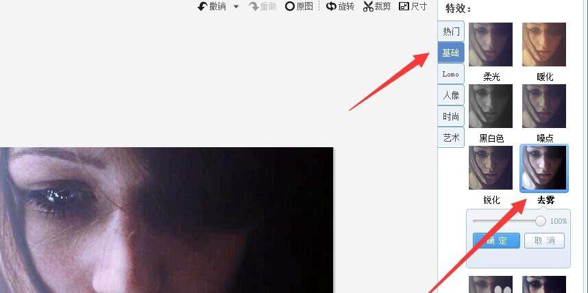 2、在基础的菜单下面,点击去雾 选项,这时可以提高图片的清晰度和对比度。