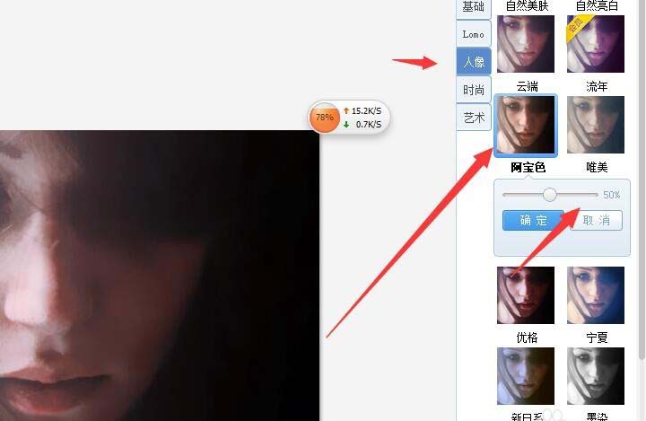 6、接下来选择50%的阿宝色和30%的淡雅,之后点击确定。