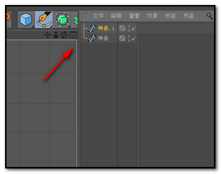 2、现在,需要把样条复制一个,并旋转到下方。在界面右上方,点下”样条“字样,然后,按下CTRL+C复制,再CTRL+V,粘贴,