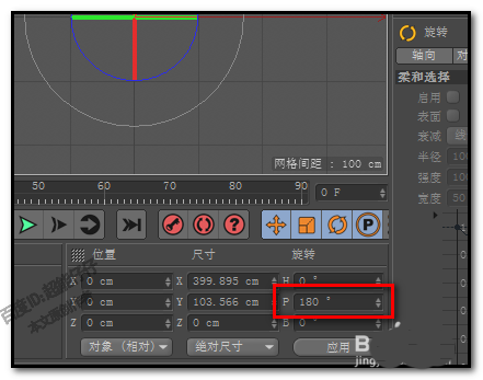 4、接着,我们目光定位在时间轴右下方这里,在旋转这项中,再在”P“这里,输入数字180