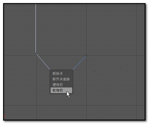 6、再选择画笔;这时,X轴向箭头和Y轴向箭头不见了。显出样条的点;然后,鼠标右击此点,弹出菜单中点:软相切。