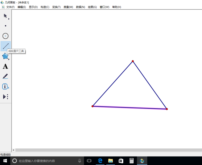 1、打开几何画板,用线段直尺工具,先绘制出一个三角形。