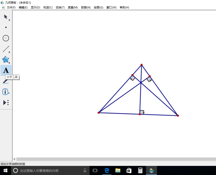 7、点文字工具。之后点三角形的三个顶点、垂点,会有字母出现。