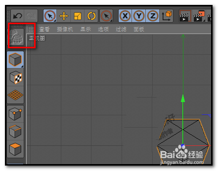 2、物体上,Y轴、X轴、Z轴相交的点是轴心;按下R键,旋转物体。我们把视图切换到正视图中比较好看些,按F4,切换到正视图。