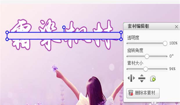 6、拉好以后,再点击输入文字,输入字中字的小字部分 ,比如图中的“SHUANG RAN FENG LIN”,输入好以后,调节一下字体的大小以及格式,然后右键点击图片,合并当前素材。字中字就制作好了。