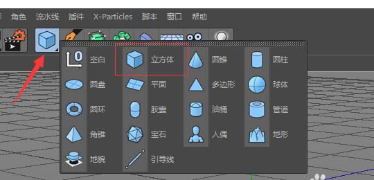 1、打开软件,新建一个立方体(为什么不用平面:因为镜子本身是有厚度的,平面本身参数达不到效果);