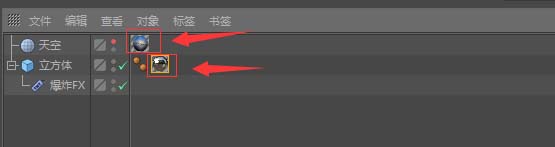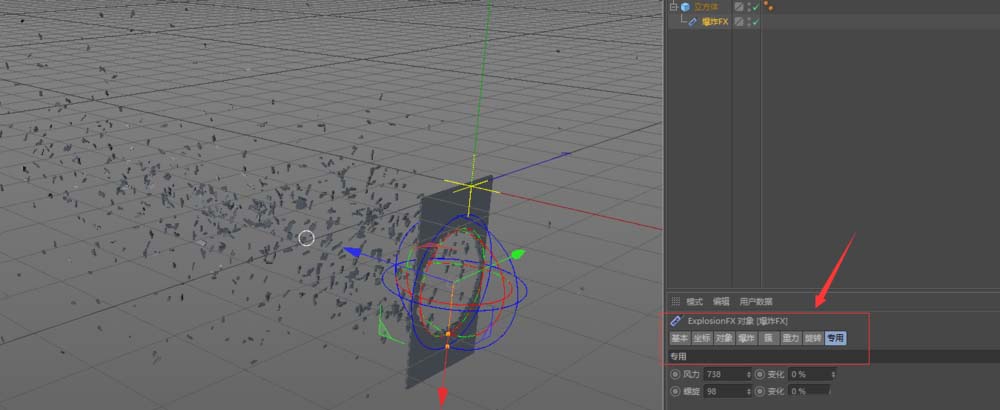 3、添加效果器-爆炸FX,将效果器放在立方体的子级,所呈现的效果;
