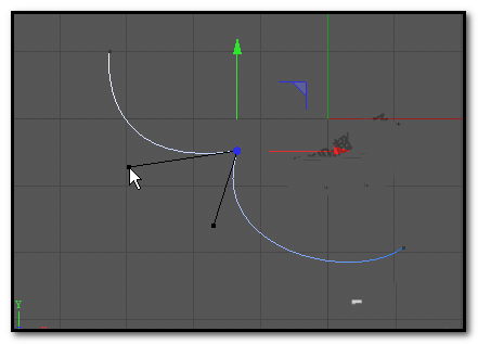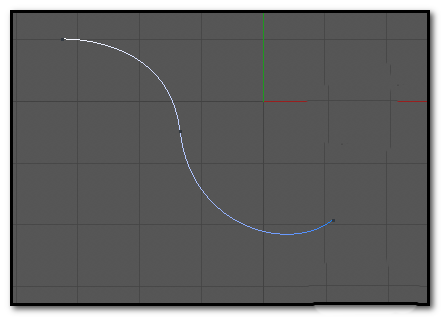 1、在正视图这里,我们画出一条贝赛尔曲线。现在画的这条曲线有节点,节点上隐藏着手柄。这些手柄需要我们手动调出来。