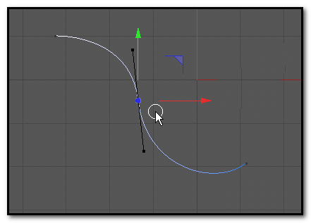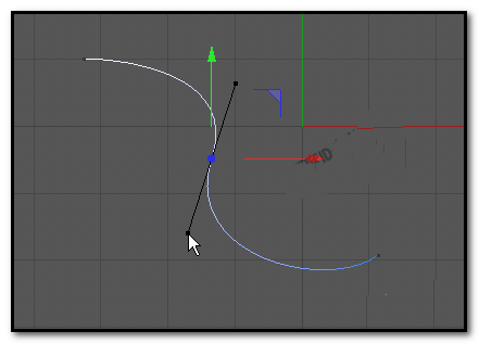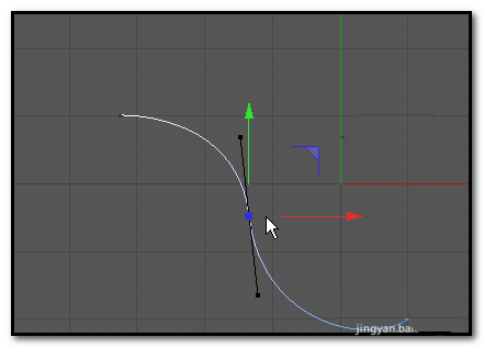 5、鼠标再去点手柄的其中一端,这时,手柄不会消失,能点住手柄,然后,调节曲线。