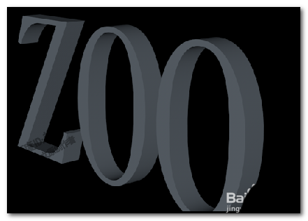 4、“ZOO”挤压出厚度了,我们滚动鼠标滚轮,把视图拉近,看下文字。可以看到文字边缘锐利。