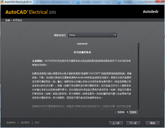 6、断开网络连接(禁用本地连接或者拔掉网线),然后打开桌面上AutoCAD Electrical 2013快捷图标,弹出界面,点“我同意”。