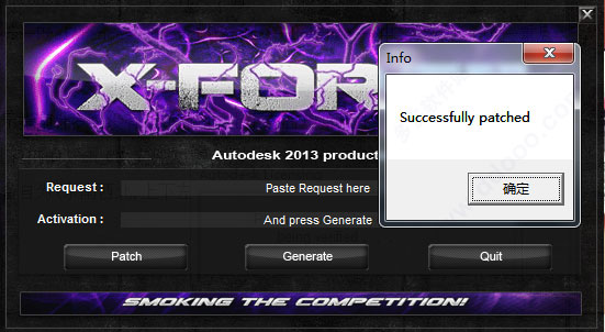 8、右键以管理员权限运行Mudbox 2013注册机,先点击“Patch”,提示“Successfully patched”