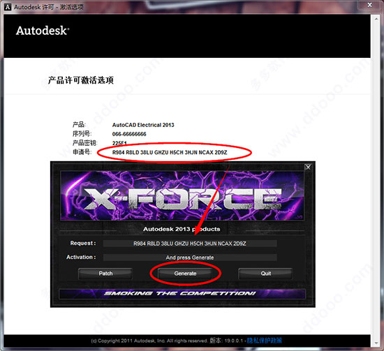 9、然后将“申请号”复制到注册机第一项,点击Generate生成激活码