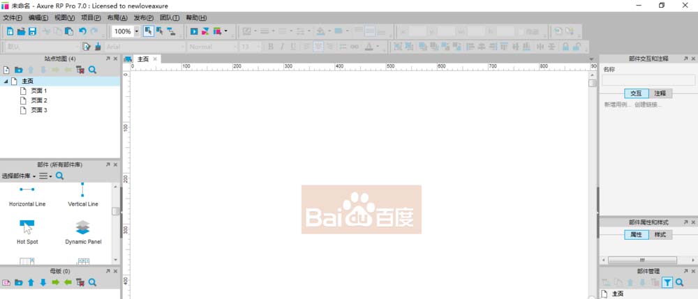 1、首先打开Axure,我们能很清楚的看到Axure的功能分区,在中央白色操作去讲我们需要制作的图片拷贝进去。