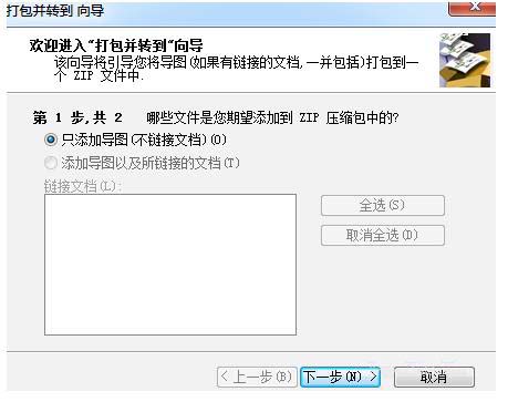 2、打包并转到向导启动,选择要添加到ZIP压缩包中的文件;