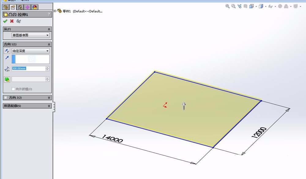 2、画地面2。然后拉伸地面的草图方框,作为地面。厚度就用200好了。